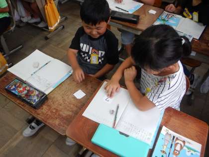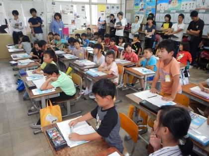 今年度最初の校内研究授業です。今回は2年2組で授業を行いました。算数の「1000までの数」の学習で,3けたの数の大きさの比べ方をみんなで考えました。松尾中学校の先生も含め,たくさんの先生が見に来ていましたが,最後まで集中して,一生懸命がんばった2年生でした。
