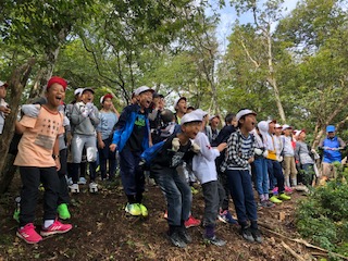 山の上から花背山の家宿舎に向かって「ヤッホー!」と叫びました。
