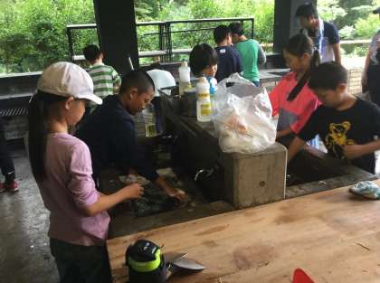食べ終わった後は、後片付けです。大きな鉄板は、本当に洗いごたえがあります。それぞれ役割を分担して、てきぱきと片付けを行うことができました。まさしく今日のめあて「Team〜仲間とともに」を意識して行動できていました。