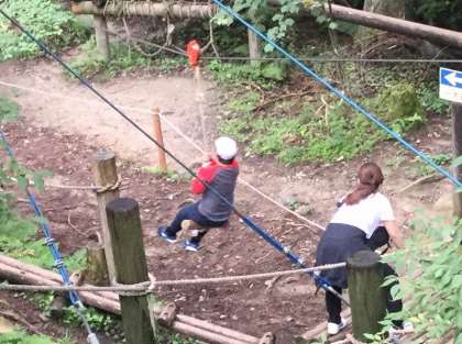 多くの子ども達が楽しみにしていた「冒険の森フィールドアスレチック」。ちょっと難しそうな所ほど挑戦意欲が湧いて、果敢にチャレンジしていました。みんなとても楽しそうに活動していました。