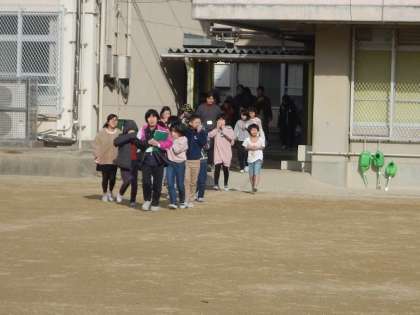 「阪神・淡路大震災」から25年,大きな被害を受けたこの震災から得た教訓を生かし,地震や地震による火事が起こった際の避難の仕方をしっかりとみんなで考え,訓練を行いました。今日は晴れ間は出ているものの,少し雨もぱらつく天候でしたが,子ども達もスムーズに避難をし,校長先生のお話を聞いていました。
