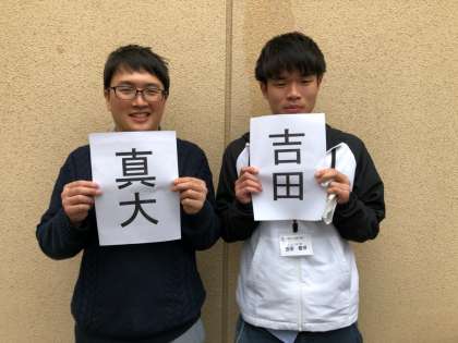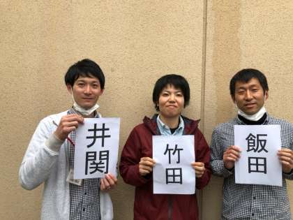 算数の問題です!「〇×クイズ」!上の吉田先生,梅岡真大先生は〇,下の飯田先生,竹田先生,井関先生は×です。さあ,なんでしょう?答えは明日発表します。教科書を見たらわかるかも?!