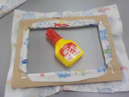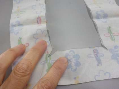 2.切り抜いた方に貼る布には,少し切り込みを入れます。