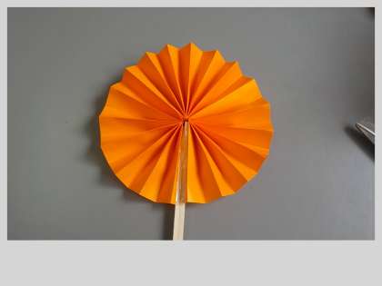 最後に,わりばしを動かして色紙を開いてみます。きれいに開かないときはのりで変なところがくっついていないか確かめましょう。