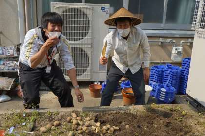 今日は,じゃがいもを植えました。