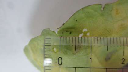 幼虫のまわりにある黒いツブツブは,幼虫のフンです。