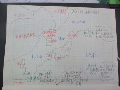 北海道・本州・四国・九州の場所を確認して書く