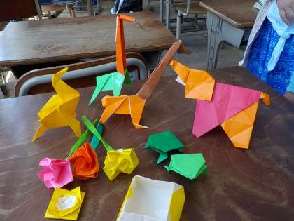 今日は,まなびの𠮷村先生が,おりがみにチャレンジしてくれましたよ!