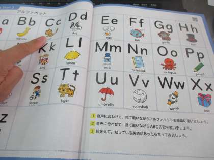 音声に合わせて,指で追いながらアルファベットを順に言うことも練習してみるのもいいですね!