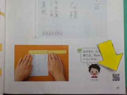のせているしゃしんは,教科書P.37の「長さ」のページです。