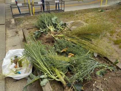 きょうは せんせいたちで 6くみばたけの ぶろっこりーを ついに ぬきました。