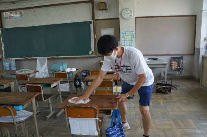 先生たちは,みんなが帰った後に毎日掃除と消毒をしています。