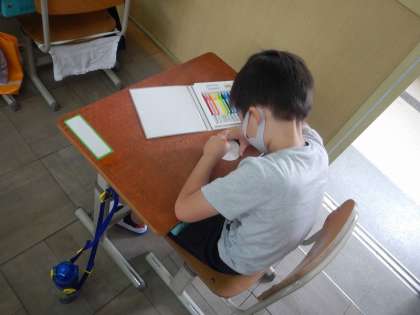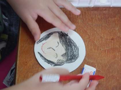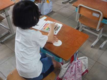 今日は,丸い紙に自分の顔をかいていきました。どんな目にしようかな?口は笑っている口にしようかな?とかいた後は,ていねいに色もぬっていきました。
