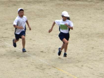 久しぶりの「50m走」です。運動場を全力で走りました。