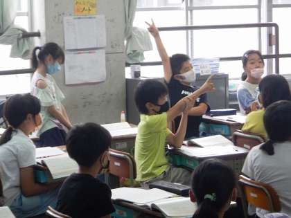 「だから」「しかし」などの,つなぎ言葉の学習をしました。文と文の間に入れるつなぎ言葉によって,文章からうれしい気持ちが伝わってきたり,くやしい気持ちが伝わってきたりと,読み手の印象が大きく変わることが分かりました。