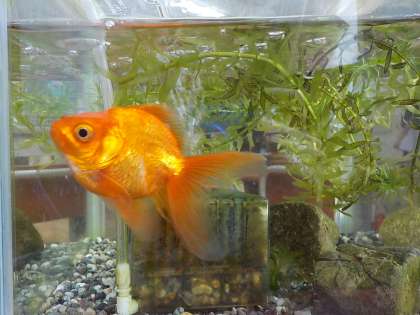 金魚のきんちゃんは,きれいな水槽の中で元気に泳いでいます。