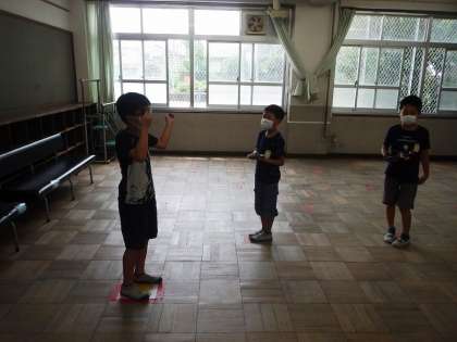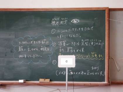自分のハンカチで目をふさぎ,右・左の順に視力を測っていきます。待つ時も間をあけて,とても静かに待つことができました。