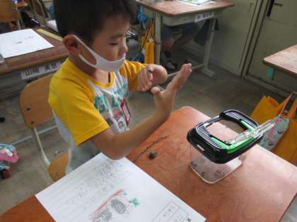 さっそく手の上にのせてみたり,名前をつけて呼びかけたりしている子もいました。