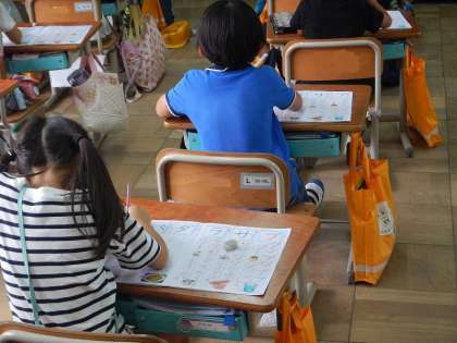 ひらがなと比べたり,似ている他のカタカナとの違いを確かめながら,ていねいに練習をしていました。