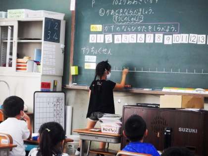10より大きい数の勉強です。今回は,数字の並び方について,数直線を使ってみんなで考えていきました。いろいろな意見を出し合いながら,みんなで学習を進めていきました。
