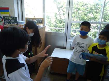 4年生が新聞づくりのために,インタビューに来てくれました。学級目標のこと,係活動のことなど,真剣なまなざしでインタビューをする4年生に対して,分かりやすく丁寧に答える6年生。さすが,最高学年です☆