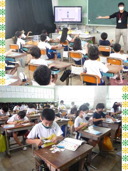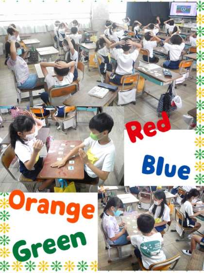 外国語活動の時間です。今回はいろいろな色の呼び方を学習しました。最後に色のカードを使って,呼ばれた色のカードを取る活動も楽しみました。