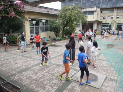 今日は雨が降ったりやんだりの1日でしたが,ちょうど雨のない時間にみんなで大縄をしました。前の人に続いて,連続で跳ぼうと挑戦です。これからもっともっと上達していきたいですね。