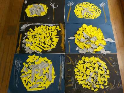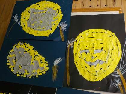 今日の図工では,色画用紙で月のちぎり絵をしました。