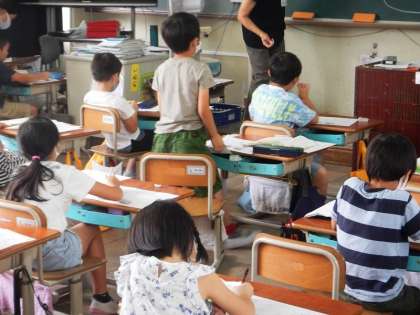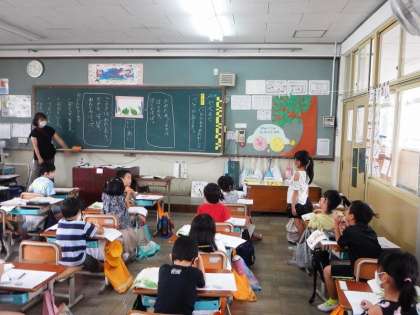 国語の「やくそく」の学習で登場する3びきのあおむしの行動から,あおむしの気持ちを考えました。あおむしのセリフもどんな風に言えばいいかな?と,みんなで意見を出し合いながら,あおむしの気持ちになって音読をしました。