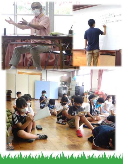 社会科「農家でつくられるもの」の学習で,来週15日(火)から始まる『畑の学校』でもお世話になる地域の方に来ていただき,お話を聞かせていただきました。