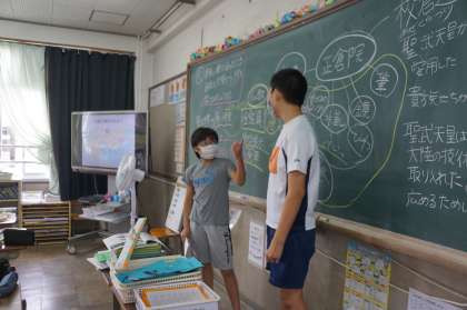 給食委員会は早速次の日にクイズをしに回っていました。