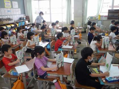 国語「やくそく」の音読をみんなで声をそろえて読みました。だんだんと息も合って,上手に読めています。1ぴきのあおむし,2ひきのあおむしときて,今日は3びきのあおむしの気持ちについて考えていきました。