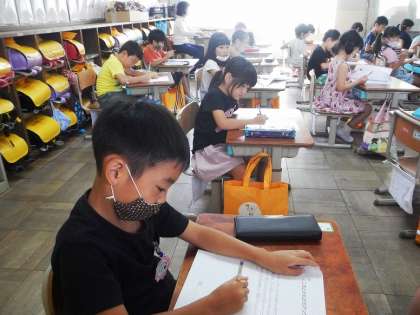 今日は,風もほんのり冷たく感じられるさわやかな1日になりましたが,夏休みが終わって2週間,暑い日も続き,疲れやしんどさを感じている子もいるかもしれません。今の自分の体調をしっかり見つめていきたいと思います。