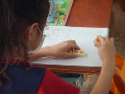 たし算とはまた違って,ブロックの動かし方が変わりますが,数図ブロックで考えることに慣れて来たのか,スムーズに問題を解く子も増えてきました。