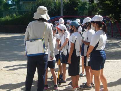 空気入れを使って,ペットボトルの中にどんどん空気を入れていき,押し縮められた空気の力で・・・。と,ペットボトルを運動場の端を目指して飛ばしました。さて,記録はどこまで!?
