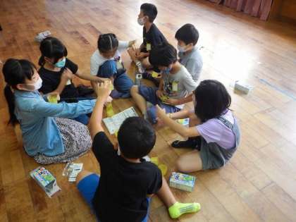 理科「音のふしぎ」の学習で,糸電話を4人でやるには,どんな風につなげば音が伝わるのかを考えました。グループで相談をしながら,つなぎ方を試行錯誤しました。実際になめしてみると・・・「聞こえた!」とうれしそうな声が上がっていました。
