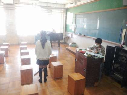 音楽の学習で練習をしてきた「いつでもあの海は」の歌のテストです。1人ずつ音楽室に入って歌います。メロディーにのせたきれいな歌声が廊下にも聞こえていました。