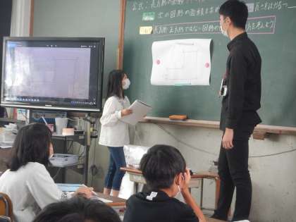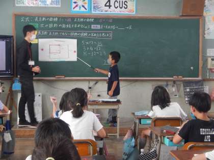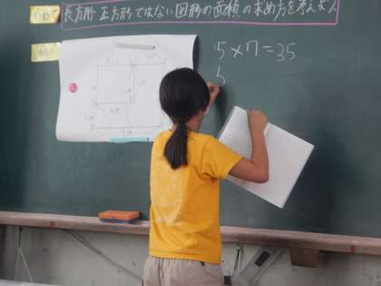 今日は算数の学習で長方形や正方形でない形の面積の求め方を考えました。いくつかの長方形や正方形に分けて考えたり,全体の面積から必要のない面積を引いて考えたりと,いろいろな方法で求めていました。