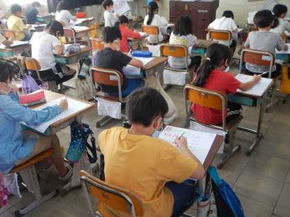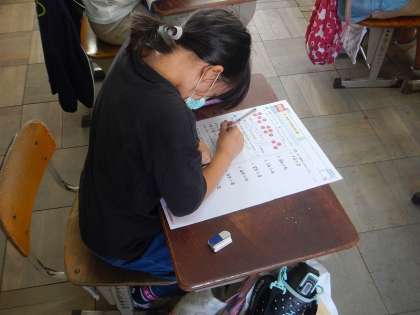 算数の「あまりのあるわり算」のテストをしました。みんな集中してがんばっていました。あまりの数がわる数を超えていないか,何度も見直していました。