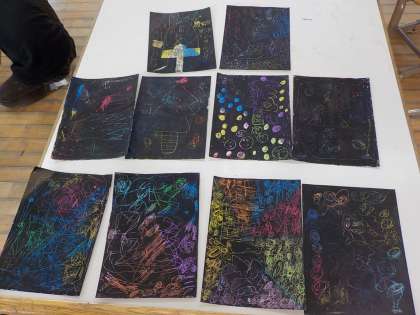 今日の図工の時間には,クレパスで「スクラッチ」をしました。