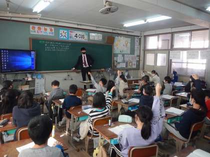 算数の学習で,数量の関係に注目して図をかいて考える学習に取り組みました。分からない数を,順番にもどしながら求めていく難しい問題ですが,いろいろな図を使って式を考え,答えを導いていました。