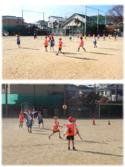 体育のパスゲームも練習を進め,子ども達も楽しくゲームを楽しんでいます。得点を入れる係やラインでどっちのチームのボールが出たか見守る係など,試合に出る以外の係の仕事も頑張っています。まだまだパスが上手につながらないことの方が多いですが,ときどき思わず「ナイスパス!」と言いたくなるプレイもだんだんと増えてきています。