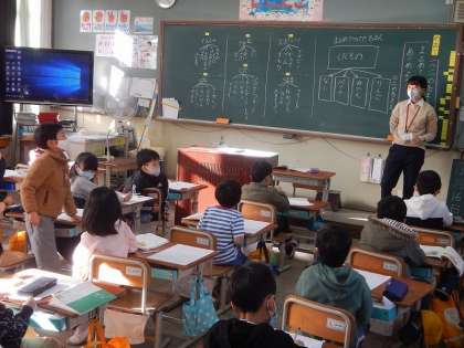 国語の学習で,いろいろなものの名前を集め,その集めた名前をまとめていきました。りんごやみかん,ぶどうという名前は,まとめると「くだもの」という名前に,ラグビーやサッカー,野球は・・・と,たくさんの名前を自分で集めて発表していました。