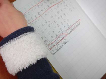 算数の学習で,普段の生活でもよくあるような場面の問題を考えました。図や式を使いながら,のこりの数を求めます。14枚,9人と単位のちがう「もの」と「人」の数をおきかえる考え方をみんなで確かめました。