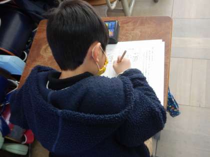 国語のテストをしました。問題文をしっかりと読んで,問題に答えていきます。
