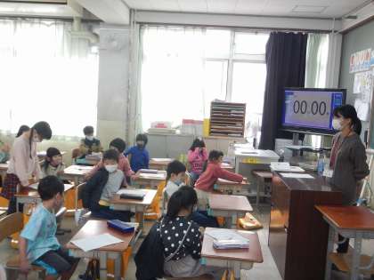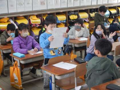 生活科で取り組んできた「にこにこ大作戦」です。今日はプリントに「にこにこ大作戦」報告書を作っていきました。できあがった報告書をもとに,みんなで交流もしました。たくさんの「にこにこ」が集まりました。また,次の目標もしっかり立てられたようです。