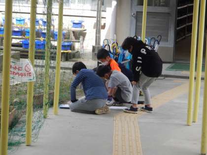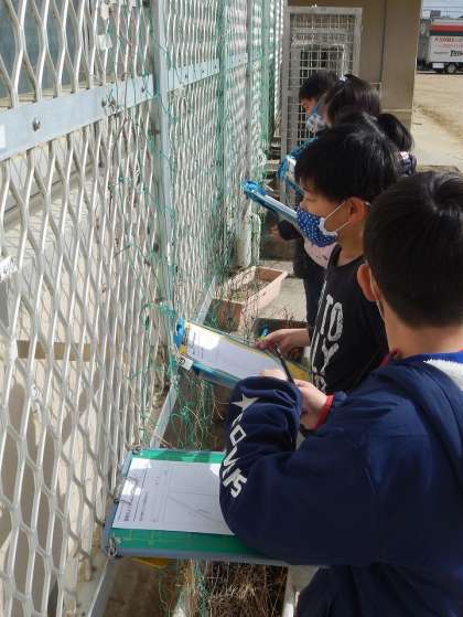 理科の学習で,冬の植物の様子を観察しました。緑がまぶしいぐらいだった夏と比べて,様子は大きく違って・・・。今日の寒い風を受けながら,枯れている植物をしっかり観察していました。