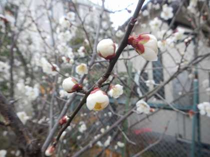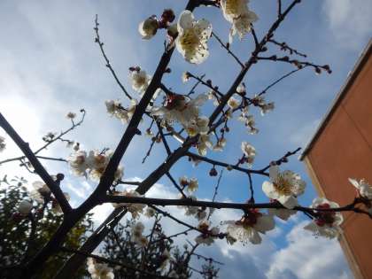あいにくの雪から1日が始まりましたが,あっという間に小雨に変わり,青空が広がってきました。学校では,梅の花もきれいに咲き始めています。