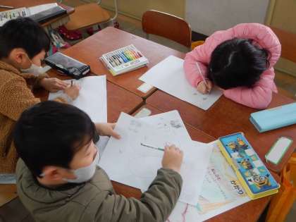 係活動をがんばっています。「ぬりえ係」や「たんじょうび係」など,いろいろな係ごとに,自分たちで仕事を考え意欲的に活動を進めています。集中しすぎて時間があっという間に過ぎていきます。「もっとやりたい!」という声がたくさんあがっていました。