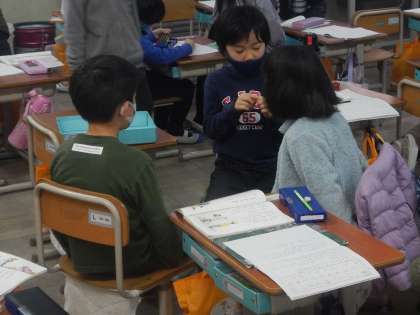 国語「ずうっと ずっと だいすきだよ」の学習で,今回は主人公の「ぼく」がどれだけエルフのことが大好きなのかを,教科書の中から見つけたり考えたりして,発表をしていきました。自分だったらどうするかな?と,「ぼく」と自分を比べながら考えていました。